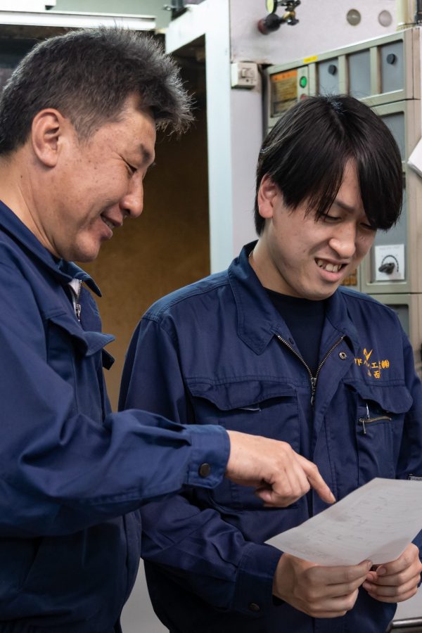 入社した初めの頃はおとなしい人かと思っていましたが、職場に慣れてきた頃から徐々に自分らしい明るさが出てきたんじゃないかなと。仕事の様子を見ていると、自分がやるべきことに対して、真面目に責任を持って向き合っているのが伝わります。成長に期待しており、まだ触ったことのない機械加工など、どんどんまかせていきたいなと思っています。