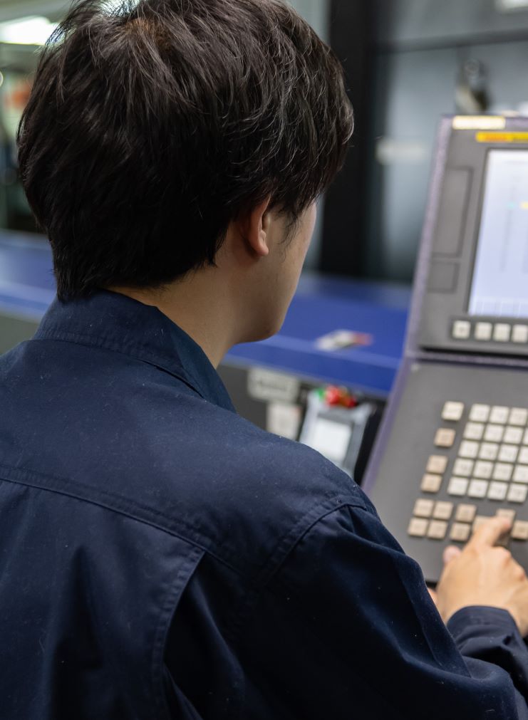 品物を作る際には、図面を読み取り、自分で刃物を選定して、加工の動きをプログラミングしていきます。加工方法や動きの順番を自分で考えながら進めていくところに、この仕事の面白さを感じています。単純な流れ作業ではなく、常に自分の頭で考えて進められるからこそ、完成したときには大きな達成感があります。
